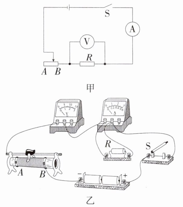(1)检查图乙,发现有一根导线接错,请在这根导线上打"×",并画出正确接法,且导线不交叉。
