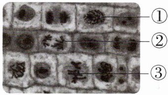 2.新教材变式「2025山西运城多县联考期中」如图为洋葱根尖细胞分裂的装片,①②③表示细胞分裂时不同细胞中染色体的状态,它们在细胞分裂过程中的先后顺序是(