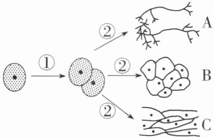 上向着不同的方向变化,从而形成组织。(2)A、B、C三种组织中,