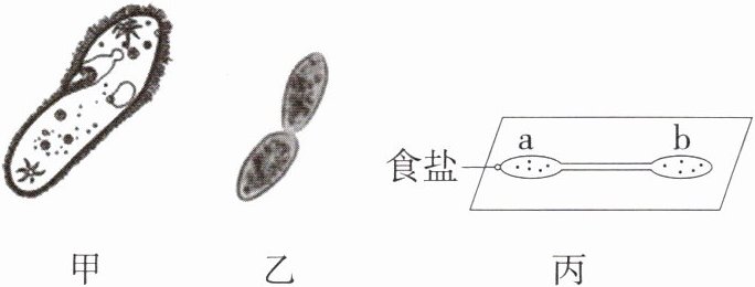 8.图甲是草履虫的结构示意图,图乙是草履虫的繁殖方式,图丙是“探究草履虫的趋性”的实验。下列相关叙述中,错误的是(