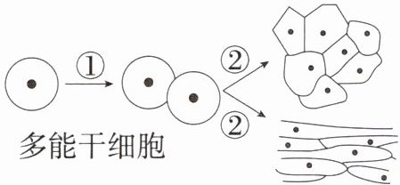 (2)细胞分化是指分裂后的细胞在形态、结构和功能上向着不同方向变化的过程。多能干细胞经过②细胞分化过程形成上皮细胞和心肌细胞。所以,上皮细胞和心肌细胞在形态、结构和功能上存在着差异。