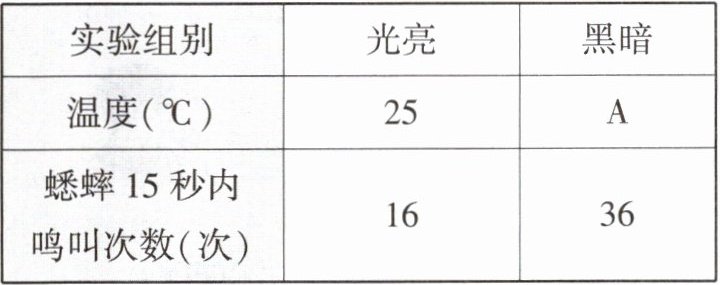 (4)有小组成员发现蟋蟀在晚上的鸣叫次数比白天的鸣叫次数要多,他想要探究光照对蟋蟀鸣叫次数的影响,则该实验的变量是