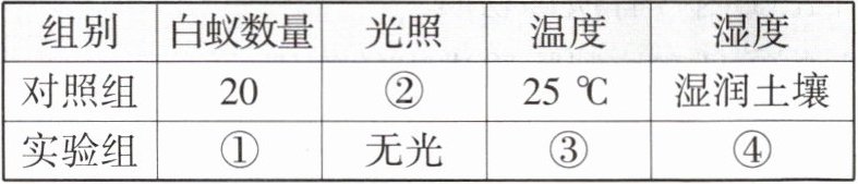 |对照组|20|②|25℃|湿润土壤|