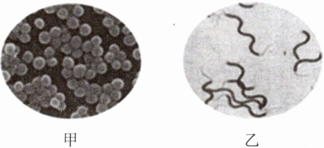 A 根据细菌的不同形态,可将细菌分为球菌、杆菌和螺旋菌,题图甲属于球菌,乙属于螺旋菌。