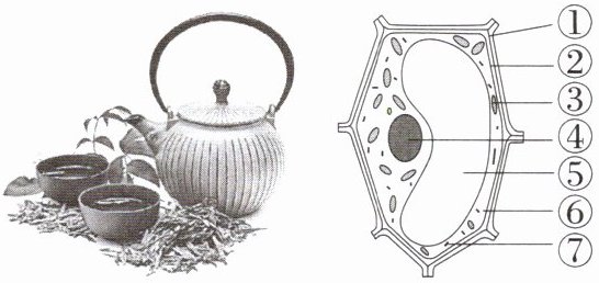 3. 新中考 识图分析题 [2024 福建泉州泉港期末] 泉州“茶文化”盛行,品茶成为一种生活时尚,清香的茶水刺激着味蕾,让人回味无穷。如图是茶树叶肉细胞的结构示意图,请据图回答: