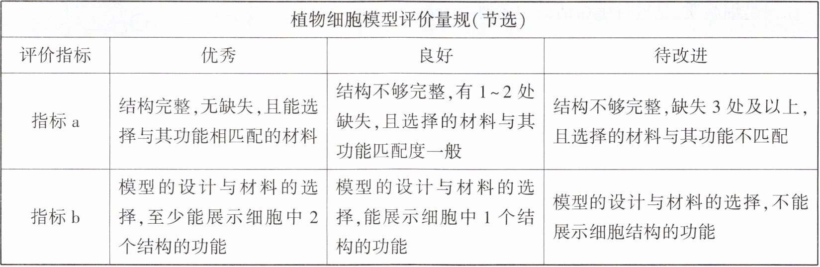 4. 新 项目式学习 同学们在老师的指导下制作了细胞模型,老师针对模型的科学性设计了如下评价量规。