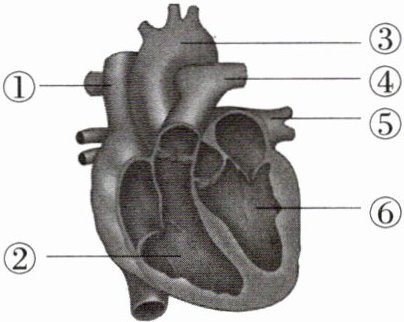 A ③主动脉的壁比①上腔静脉厚,A正确;⑤肺静脉内流动脉血,B错误;⑥为左心室,连接主动脉,C错误;②为右心室,心脏四腔中⑥左心室的壁最厚,D错误。