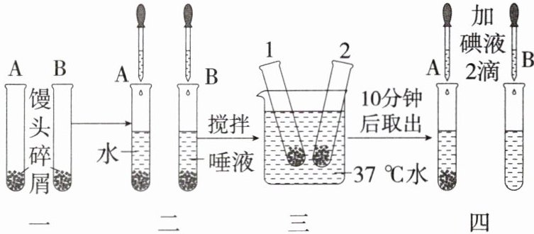 5.新教材变式 [2024 广东珠海香洲五校联考期中]如图是某生物兴趣小组的同学探究“淀粉在口腔内的消化”的实验过程,其中的一、二、三、四表示四个实验步骤。请回答下列问题。