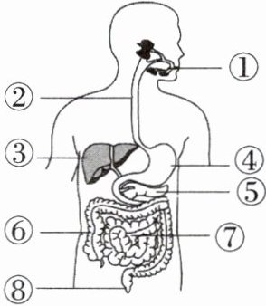7.新中考识图分析题 [2024 四川广安中考]小林家的午餐有红烧肉、米饭、凉拌时蔬、西瓜。如图是人体消化系统结构示意图,下列说法正确的是 (