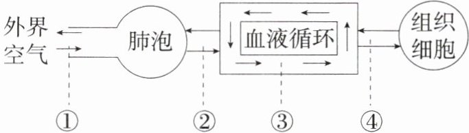 1.[2024 山东济南天桥二模]如图是人体呼吸全过程示意图,其中①~④表示相应的生理过程,相关叙述错误的是 (