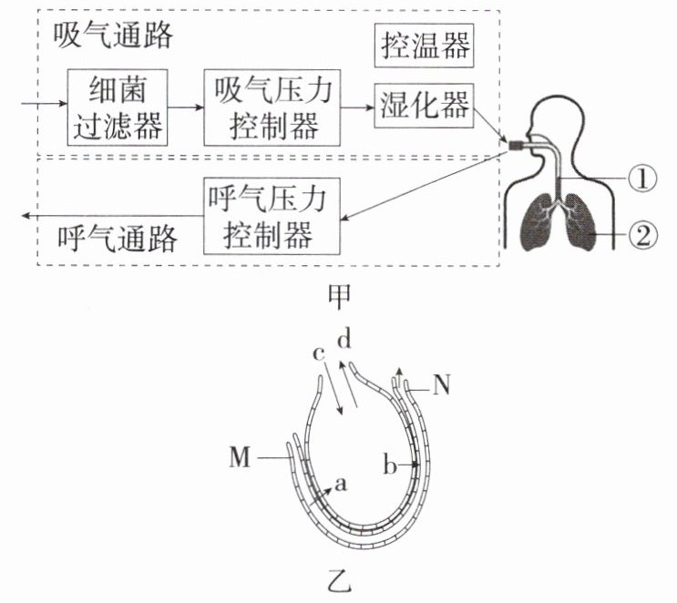 (1)图甲中,呼吸机管道从口腔进入,经咽、喉一直插入患者的①