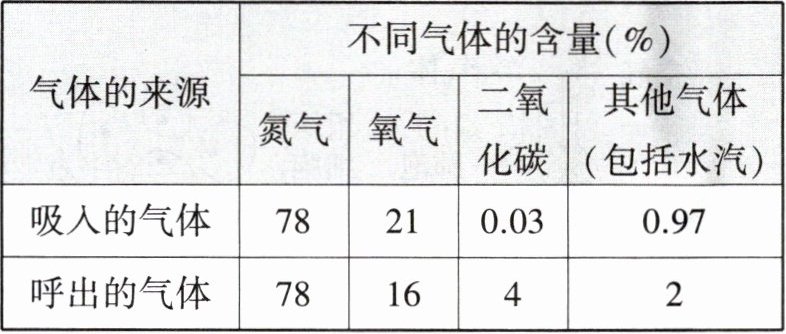 | |氮气|氧气|二氧化碳|其他气体(包括水汽)|