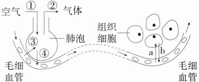(3)过程a、b表示血液与组织细胞的气体交换,其都是通过气体的