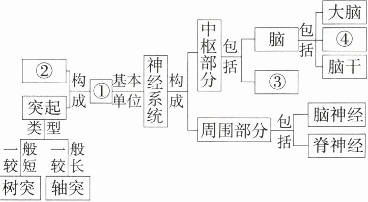 10.新课标 探究实践 [2024湖南长沙长郡教育集团期末]如图为关于神经系统的概念图,请填出标号所代表的内容: