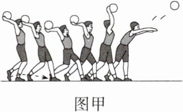 19.[2025广东深圳南山期末](5分)康康在校运会上参加了"掷实心球"项目。"掷实心球"的步骤包括:持球、准备姿势、预摆、出手前的松"反弓"姿势、缓冲并维持身体平衡(如图甲所示)。