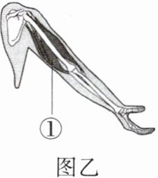 (2)康康在投掷实心球的过程中,图乙中①处于______状态,牵动______绕关节活动,使手臂伸直,将球掷出,这个过程至少有______组肌肉配合完成。