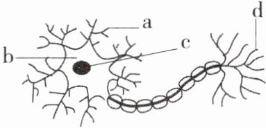 B 由图示可知,a是树突,b是细胞体,c是细胞核,d是神经末梢。