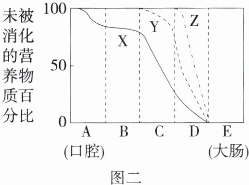 (2)图二中的D部位在图一中所对应的器官是[ ]______,其内有多种消化液,其中不含有消化酶的消化液是______。