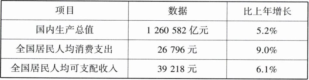 | 国内生产总值 | 1260582亿元 | 5.2% |