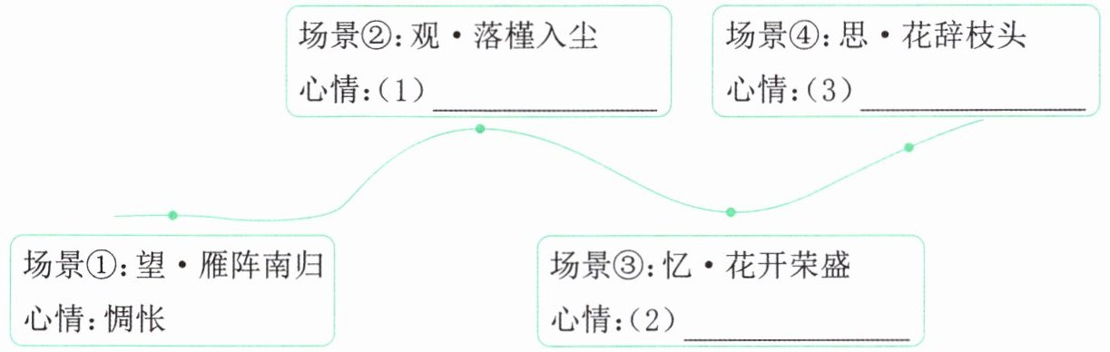 | 场景①:望·雁阵南归 心情:怅惘 | 场景③:忆·花开荣盛 心情:(2)______ |