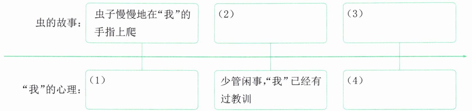 虫的故事:虫子慢慢地在“我”的手指上爬 → (2)______ → (3)______