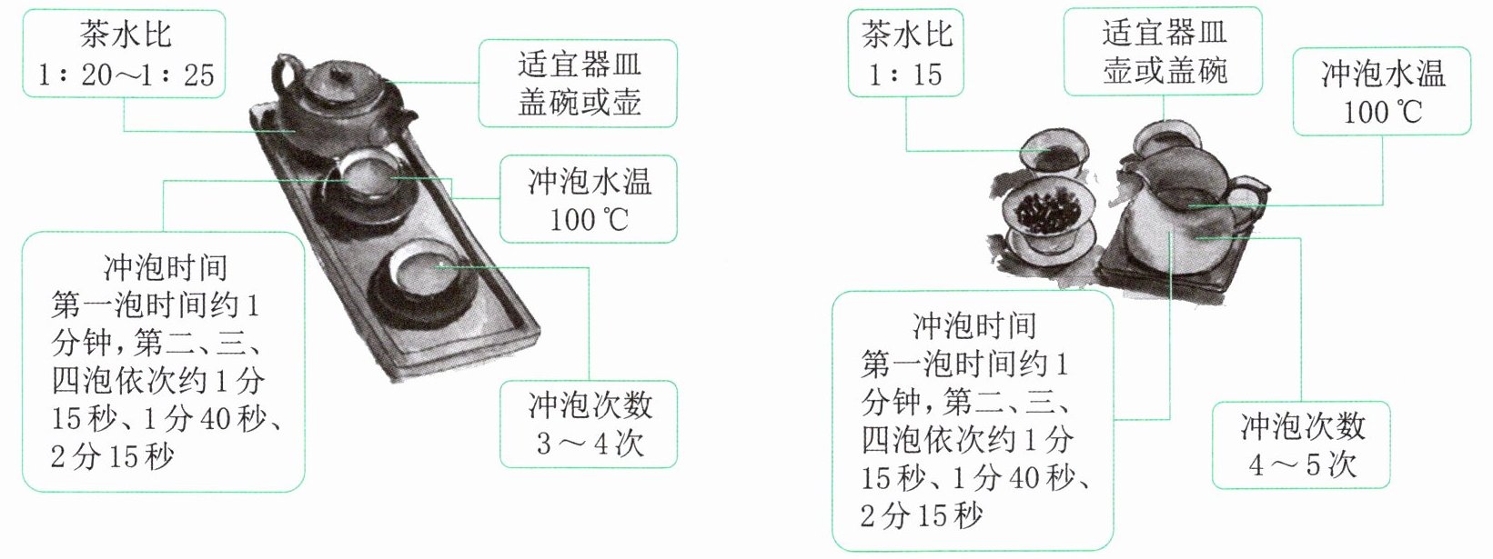 C. 海报中心图片上的茶壶和盖碗适宜冲泡红茶、白茶和乌龙茶,冲泡水温 100℃为宜。