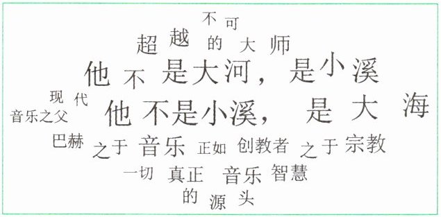 (1)请为“巴赫就是这样清澈的小溪水”设计重音并说明理由。(4分) ______ ______