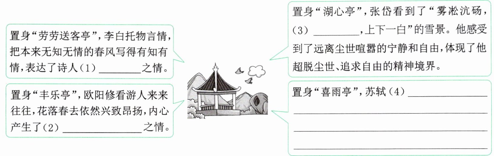 5. *文人墨客笔下的“亭”寄托了他们丰富的情思。请结合材料及所学,探究文人抒发的情思。
