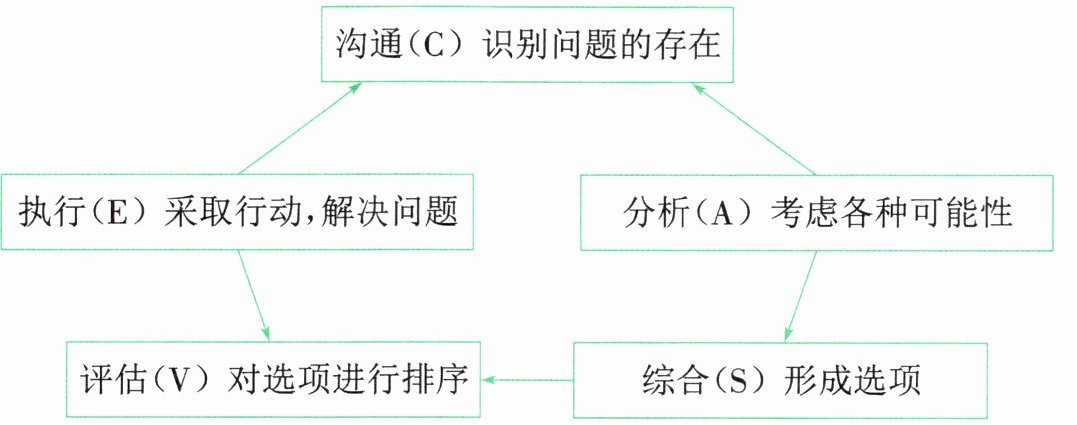 CASVE循环是罗伯特·里尔登(等人)提出的职业决策技术,包括沟通、分析、综合、评估和执行五个阶段(CASVE即这五个阶段英文单词首字母)。沟通阶段重点在于发现理想职业与现实的差距;分析阶段重点在于了解产生差距的原因,并探索解决问题的可能途径;综合阶段对前一阶段的解决方案进行比较,确定能够解决问题的有效方法;评估阶段的重点在于衡量每一种选择对自己可能产生的影响,并对选择进行排序;执行阶段就是把计划转变为行动,解决问题。