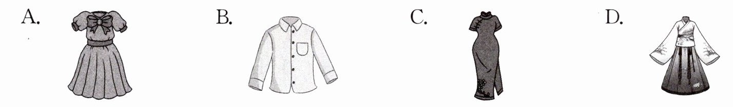 ( )2. 新考法·图片理解 Which of the following pictures refers to Qipao?