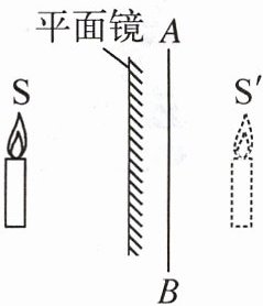 9. 如图所示,蜡烛S在平面镜中所成的像S'。若在镜后放置一块透明玻璃AB,则像S'将