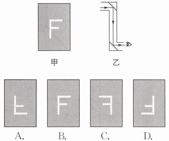 2. 如图乙所示是小安同学自制的潜望镜,利用它能在隐蔽处观察到外面的情况,用它正对如图甲所示的光源“F”,则所观察到的像是 (