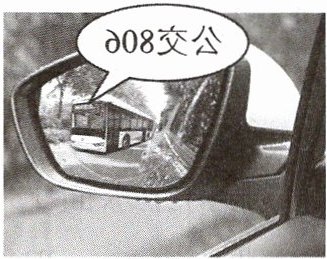1. 如图所示,为某轿车通过后视镜(看成平面镜)看到的情景,该公交车线路为 (