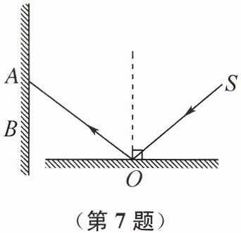 7.(2024·镇江三中期中)水平放置的平面镜将一束光线SO反射至竖直墙壁的A点,如图所示,要使反射光线射向B点,下列操作不正确的是 (