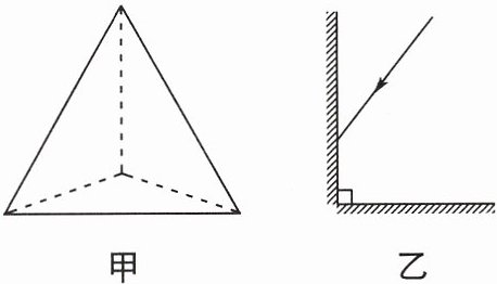 10.(2024·泸州中考)如图甲是随“嫦娥六号”一起发射的角反射器的示意图,其三个反射面相互垂直,其中两个反射面如图乙所示,一束光只在这两个反射面发生了反射,请在图乙中画出这束光反射的光路图(保留作图痕迹)。