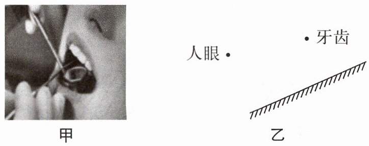 12. 如图甲中,牙医借助平面镜观察牙齿的背面。请在图乙中画出能反映此过程的光路图。