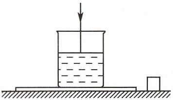 10. 如图所示,一只烧杯中装有半杯水,放在水平木板上,一束光线竖直向下照在水面上。现在在木板右端下方垫一个小木块,使木板倾斜5°,则此时水面上的反射角会 (