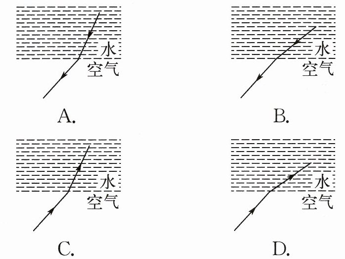 A 提示:水面下北极熊的身体发出的光从水中斜射入空气中,折射角大于入射角,所以游客看到北极熊身体的光路图是 A。