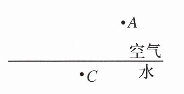 提示:根据光的直线传播,将光线延长,与池壁的交点即亮斑 A 的位置;往池内注水,水面升至虚线位置时,发生折射,折射角大于入射角,偏转后与池壁的交点,即亮斑 B 的位置。