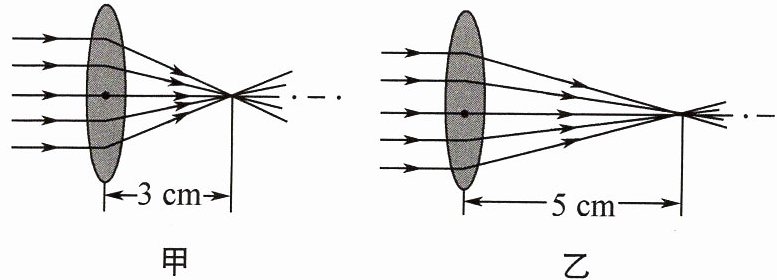 8. (2024·徐州西苑中学月考)如图所示,甲、乙两个凸透镜的焦距分别是3 cm和5 cm,下列说法正确的是(