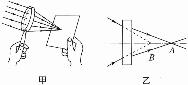 cm。如图乙所示,一束光线经过一个透镜后相交于主光轴上的A点,取走透镜后光线相交于B点,则该透镜是凹