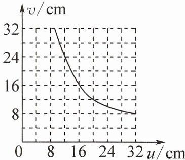 15. (2024·扬州邗江期中)某班同学在"探究凸透镜成像的规律"实验中,绘制了像到凸透镜的距离v跟物体到凸透镜的距离u之间的关系图像,由图可知,该凸透镜的焦距是