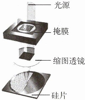 D 提示:该缩图透镜为凸透镜,且要制造出含有众多元件的集成电路,所以可知该凸透镜成倒立、缩小的实像;结合凸透镜成缩小实像的条件可知,掩膜位于缩图透镜二倍焦距之外,硅片到缩图透镜的距离(像距)在一倍焦距和二倍焦距之间。要想硅片上所刻电路变小,即像要变小,则应增大物距,需将掩膜向上移动。