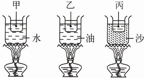 11. 某兴趣小组用相同的烧杯盛等量的水,以相同的热源同时加热。如图所示,甲杯为隔水加热,乙杯为隔油加热,丙杯为隔沙加热,加热一段时间后,测得烧杯外物质的温度分别为水温100℃、油温300℃、沙温600℃,且观察到乙、丙两烧杯中的水呈沸腾状态,则三杯水的温度的关系为(