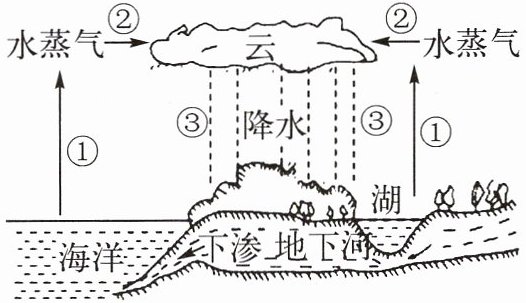 8. 如图是水循环示意图。图中过程①发生的物态变化是