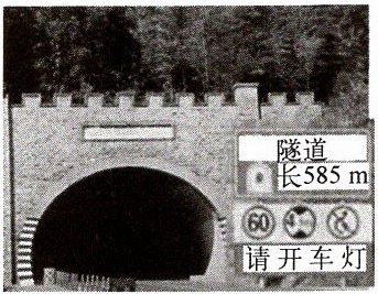 11. 如图所示,是隧道及公路旁的交通标志牌。从标志牌上可以看出,隧道长