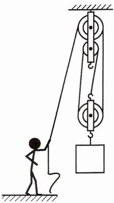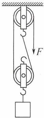 8. 在九年级物理拓展课上,李博同学模拟某建筑工地上塔吊的工作情景,设计了如图所示的滑轮组来提升装修材料,若他用 250 N 的拉力在 20 s 内将 450 N 的材料提升了 10 m。问:(不计绳重和摩擦,g 取 10 N/kg)