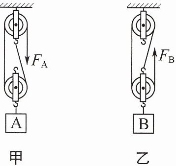 $W_{B}$。若$G_{A}>G_{B}$,则两滑轮组 的机械效率$\eta_{甲}$>