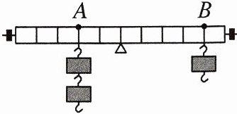 1. 如图所示,每个钩码的质量相等,在均匀杠杆的 A 处挂 2 个钩码,B 处挂 1 个钩码,杠杆恰好水平平衡。在 A、B 两处再各加 1 个钩码,那么(