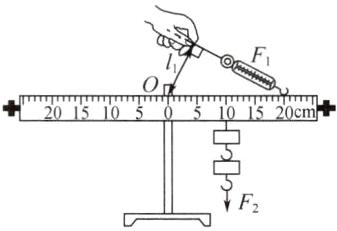 $(2)F_2$的力臂$l_2$为______cm,当$F_2$的大小为1N时$,F_1$竖直向上拉杠杆,仍使杠杆在水平位置平衡$,F_1= ______N。$